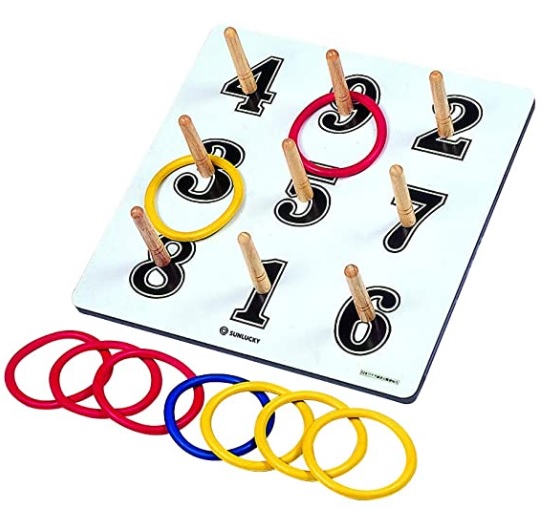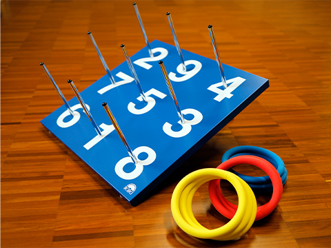 日本での輪投げ事情日本では大正の頃に神戸港に入港する船により広まったのだが、現在「日本ワナゲ協会」や、「国際輪投げ協会」、「神戸投輪連盟」等が普及に務めており、 それぞれの協会により多少の輪投げセットの規格や適用するルールに違いがありますが、輪投げ盤上に9本のピンを設け、投げたリングが入ったピンに振られた数字の合計で得点とする方式を取っており、基本的には同じです。![]()