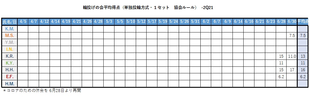 輪投げの会平均得点 - 21Q2Score