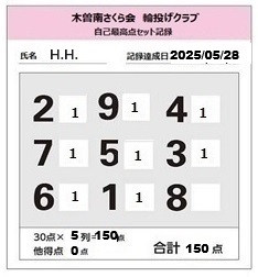 🥇 H.H.さん 2025/05/28 150点更新 ←2023/09/13 99点更新 ←2023/05/31 95点更新 ←2022/01/05 90点達成