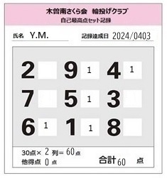 E.F.さん 2025/04/02 66点達成 M.Y.さん 2023/07/26 54点達成 Perfect 記録![]()